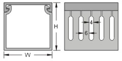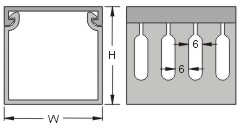 | 構造: | 由槽底及槽蓋兩部份組成,槽底兩側設出線孔,以組合後外部之寬、高為規格標準,UL測試溫度50℃。 | |